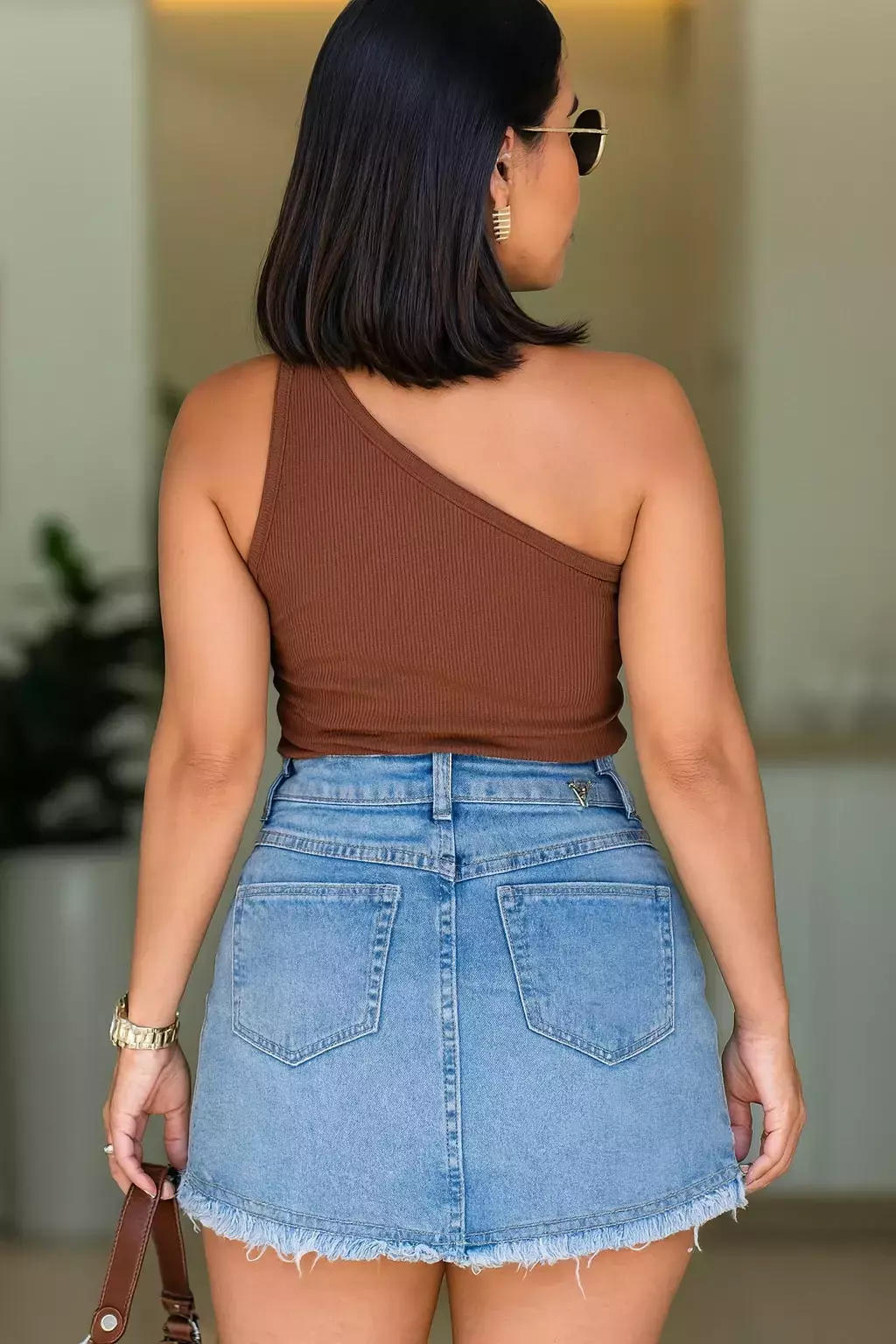 Com cintura média, barra desfiada e detalhes em camadas, une praticidade e estilo em uma peça versátil, perfeita para compor looks casuais ou produções mais fashion.