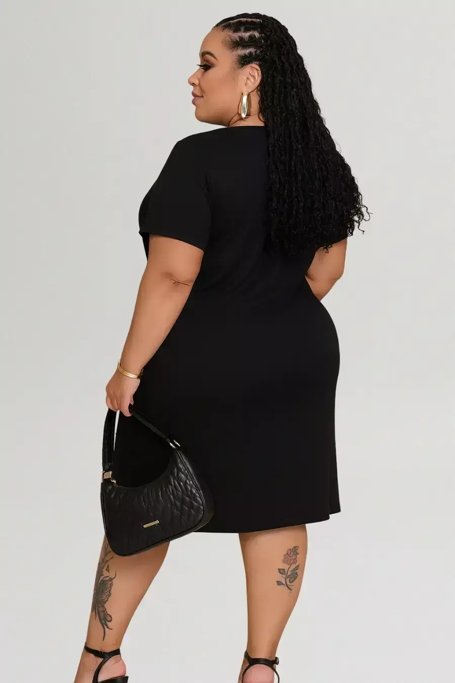 O Vestido Feminino Midi Plus Tardani é a peça ideal para quem busca praticidade, conforto e sofisticação em um só look. Confeccionado em tecido macio e maleável, composto por 96% viscose e 4% elastano, oferece toque suave, excelente caimento e elasticidade que valoriza as curvas com naturalidade.