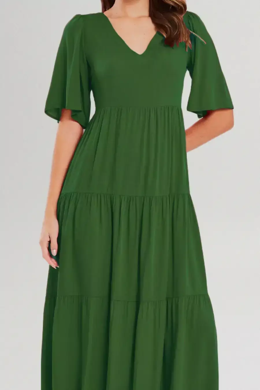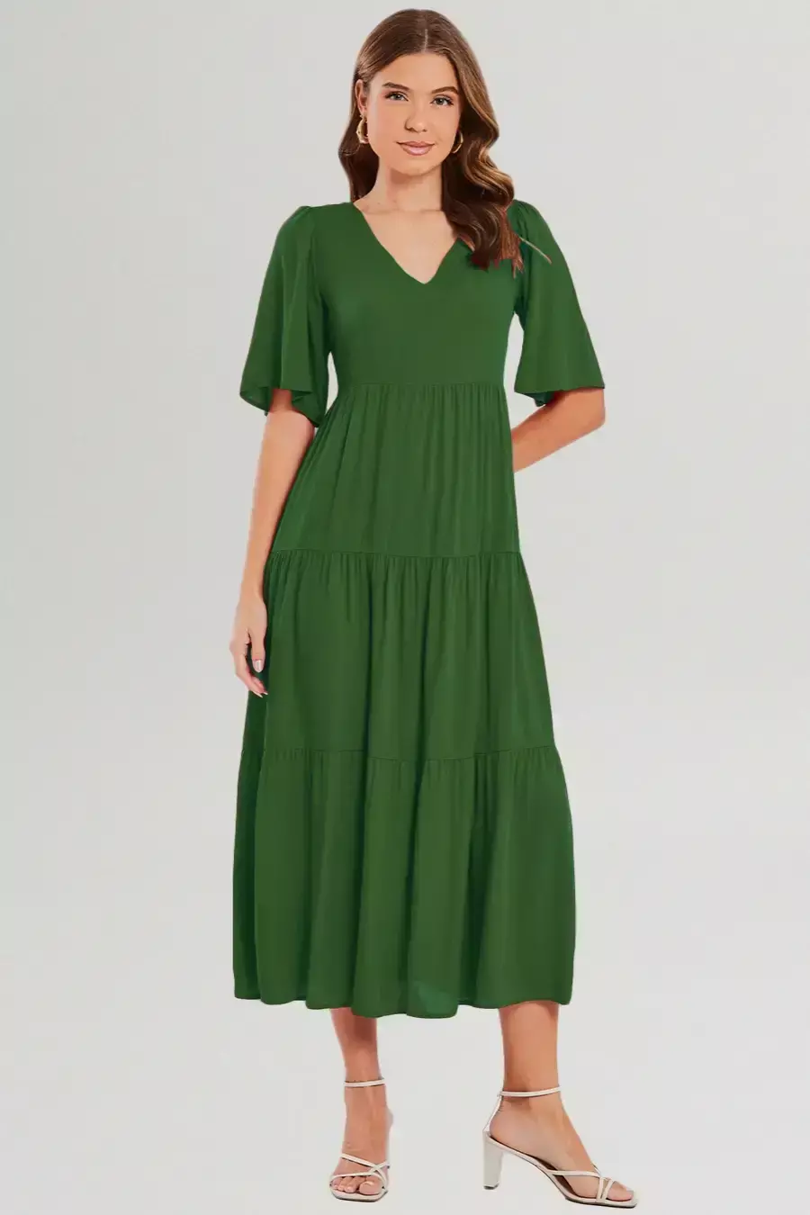 Seu design conta com decote em V, mangas curtas soltinhas e recortes em camadas no estilo “três marias”, que conferem movimento e delicadeza ao visual. Versátil e atemporal, pode ser combinado com sandálias para produções casuais ou com salto para ocasiões mais sofisticadas.