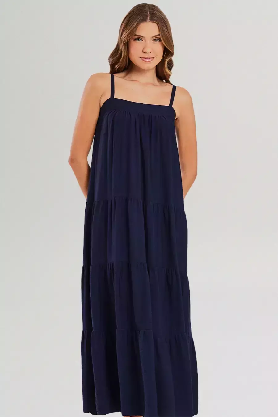 Com alças finas, decote reto e modelagem ampla com recortes em camadas (três marias), garante um visual moderno, feminino e elegante. Versátil, pode ser usado em ocasiões casuais ou em produções mais sofisticadas, dependendo da escolha dos acessórios.