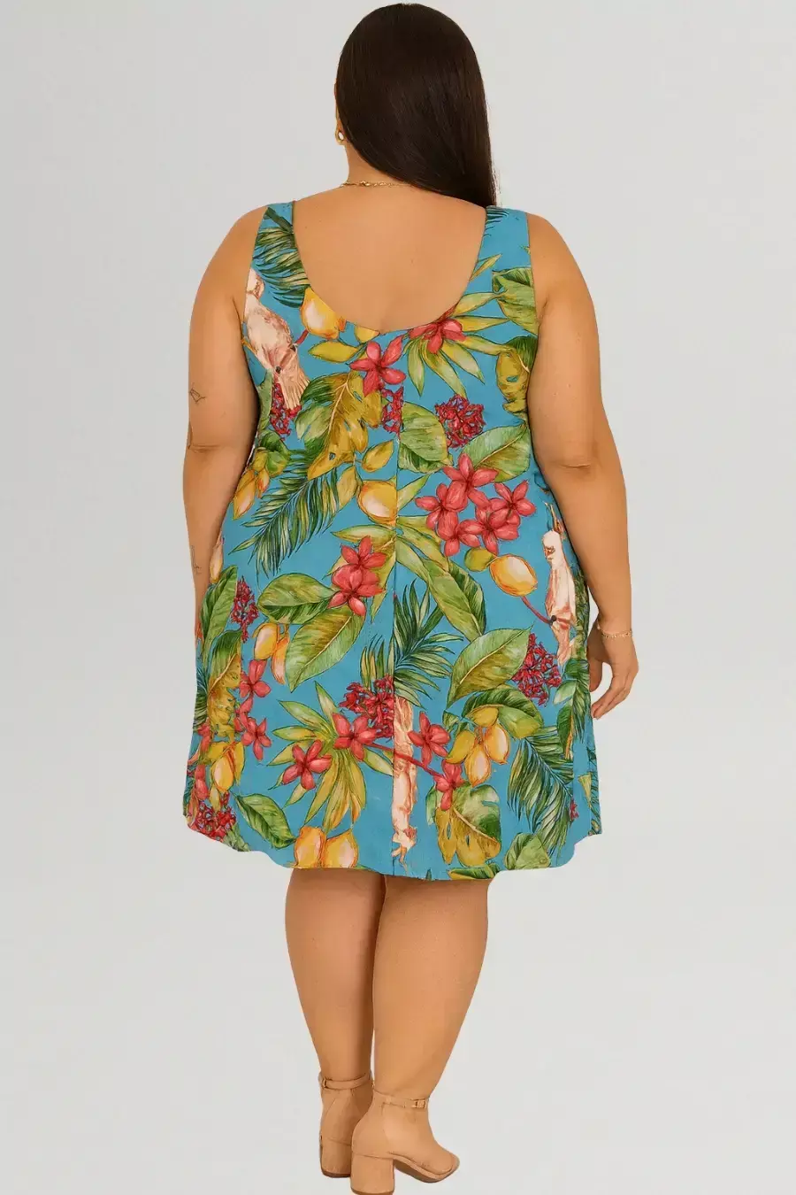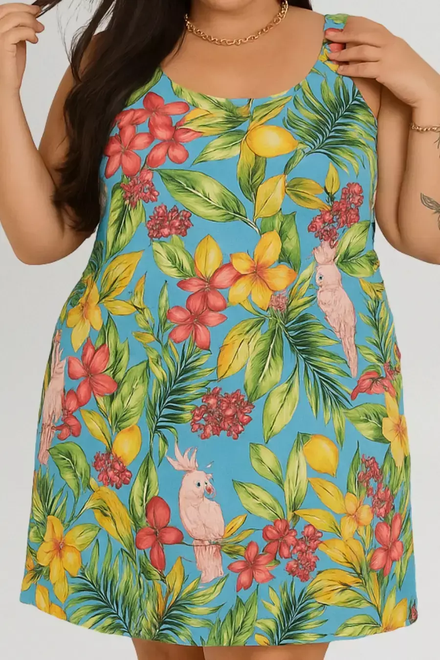 1 Vestido Feminino Plus Size Curto Regata Estampado Tropical Floral – Alta Qualidade